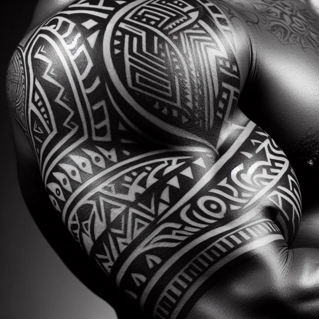 Трайбл-татуировки — это один из самых популярных стилей, который часто выбирают для бицепса. Они характеризуются геометрическими узорами и черными линиями, которые создают впечатляющий визуальный эффект.